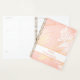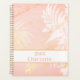 Ein abstrakter tropischer Hintergrund in Korallen, Rosa und Weiß. Mit Blätter aus weißer Palme, einer goldenen Rose und einem pfirsichfarbenen Hintergrund mit Imitaten mit goldenen Pinselstrichen. Personalisieren und fügen Sie Ihren Namen und ein Jahr in Rose Gold.