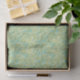 Grüne und gelbe Koralle mit einem Hintergrund aus weichem Meer und Blau.