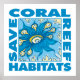 Umweltdesign in schönen ozeanblauen Farben. Befürworter des Schutzes und der Erhaltung der Lebensräume von Korallenriffen. Tierarten - bedroht, bedroht oder nicht - brauchen Hilfe! Nette Geschenke für Öko-freundliche Leute
