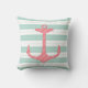 Korallenrosa Anker Nautische Minze Grüne Streifen Kissen
