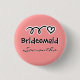 Korallenrosa Bräunungsknöpfe mit niedlichen whimsical Liebe Herz und eleganten Schriftart. Niedlicher Druck für Junggeselinnen-Abschied, Brautparty und Hochzeitsfeier. Besuchen Sie unseren Fun Store für extravagantere und klassische Heiratsdesigns. Anpassbare Hintergrundfarbe.