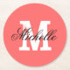 Korallenrosa personalisierte Monogramm-Untersetzer Runder Pappuntersetzer