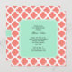 Mit Monogramm Korallenrosa Quarrefolienmuster mit Minzgrün Brautdusche Einladungen. Trendy rosa Quarrefolienfolie auf weiß mit minzgrünem Akzent.