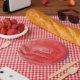 Korallenrosa Rose, Name, floraler Bat Mitzvah Pappteller
