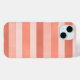 Ein trendiger korallenrosa iPhone 15 Gehäuse mit einem modernen Streifen Muster in hübschen Tönen von Terracotta, Korallen, Rost, Rosa und Pfirsich.