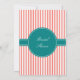 Das Design ist mit einem abwechselnden Korallenrosa und weißen Streifen Muster auf dem Hintergrund. Ein elegantes Streifenmuster und in der Mitte befindet sich ein aquamarines Rechteck, in dem Sie den Text Ihrer Einladung hinzufügen können.