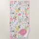 Chic feminin Handtuch mit Feder Wasserfarbe blassrosa, korallen, gelb, blau und grün handbemalten Blüten und Blattwerk. Personalisieren Sie es mit Ihrem Monogramm und Namen in einer eleganten bearbeitbaren Skriptkalligraphie-Schrift! +++++++++++++ könnte ein hübsches, individuelles Geburtstagsgeschenk für Ihre Ehefrau / Mutter / Schwester sein.