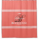 Korallenrote Dekor-Schwarz-Initialen-weißes Duschvorhang