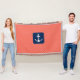 Modischer Seeentwurf der korallenroten Tupfen mit Marineblaufahne in der Mitte mit weißem Anker.