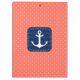 Modischer Seeentwurf der korallenroten Tupfen mit Marineblaufahne in der Mitte mit weißem Anker.