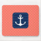 Modischer Seeentwurf der korallenroten Tupfen mit Marineblaufahne in der Mitte mit weißem Anker.