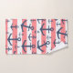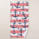 Sommerentwurf, der Marineblau-Ankermuster auf einer Koralle und weißen einem Streifenhintergrund kennzeichnet.