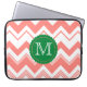 Korallenrotes weißes Monogramm-Zickzack Muster Laptopschutzhülle