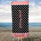 Korallenschwarz und Weiß Polka Dots Custom Bath Handtuch. Einfach Text bearbeiten, um personalisieren!