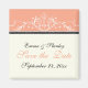 Zierkoralle, weiße Hochzeit Zoll Save the Date Magnet, mit einer schönen Korallen und weißen Zierrahmen mit Scrollwork auf Elfenbeinhintergrund.