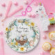 Korb mit Eiern und blumengeschmückten Ostern Pappteller