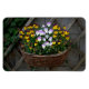 lila und weiß-rosa Violas, schön in einem geflochtenen Holzkorb angeordnet