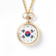 Der weiße Hintergrund symbolisiert "Sauberkeit der Menschen". Der Taegeuk stellt den Ursprung aller Dinge im Universum dar. die beiden Grundsätze Yin und Yang in einem ausgewogenen Verhältnis zu halten; Ersterer ist der negative Aspekt, der in blau dargestellt wird, und letzterer als der positive Aspekt in rot. Gemeinsam stellen sie eine kontinuierliche Bewegung innerhalb der Unendlichkeit dar, die beiden fusionieren als eine.