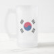 Der weiße Hintergrund symbolisiert "Sauberkeit der Menschen". Der Taegeuk stellt den Ursprung aller Dinge im Universum dar. die beiden Grundsätze Yin und Yang in einem ausgewogenen Verhältnis zu halten; Ersterer ist der negative Aspekt, der in blau dargestellt wird, und letzterer als der positive Aspekt in rot. Gemeinsam stellen sie eine kontinuierliche Bewegung innerhalb der Unendlichkeit dar, die beiden fusionieren als eine.