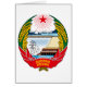 Das Emblem folgt den Richtlinien des grundlegenden Entwurfs des Emblems der Sowjetunions, die in vielen anderen Ländern einschließlich Nordkorea adoptiert wird, das offenbar die Beziehungen zwischen der kommunistischen Ideologie und der Grundlage des Landes zu Beginn des kalten Krieges anzeigt.