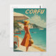 Dieses elegante Vintage Poster besticht durch den sonnigen Charme Korfus mit einer stilvollen, am Strand stehenden Frau aus den 50er Jahren. In einem klassischen Sommerkleid verkleidet und mit Blick auf das glitzernde Ionische Meer, verkörpert sie den zeitlosen Glamour der Mittelmeerferien der Mitte des Jahrhunderts. Mit sanften Retrofarben und nostalgischen Texturen ist dieses Kunstwerk perfekt für Liebhaber von Vintage-Reisen und Stranddekorationen.