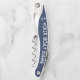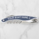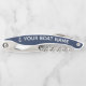 Boat trinkt, jemand? Passen Sie diesen coolen nautischen Korkenzieher mit dem Namen Ihres Bootes in weißer Schrift auf einem klassisch marineblau-blauen Hintergrund an, mit einer Ankerillustrierung.