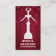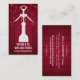 Eine Silhouette eines Korkenziehers, der eine Flasche Wein öffnet, ist auf dieser Merlot farbigen striped Geschäftskarte dominierend. Weinstöcke schmücken die Ränder mit dem Handelsnamen und Hauptden kontaktinformationen unter der geernteten Flasche. Fügen Sie einen Namen und einen Titel zusammen mit Extrainformationen über die Rückseite hinzu. Vervollkommnen Sie für eine Weinhandlung oder jeder möglicher Spirituosenladen, ein Sommelier oder irgendein Weinkenner. Verfügbar mit zusammenpassenden Produkten.