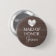 Personalisiertes Land Chic-Abzeichen mit grungy Herzen und eleganter Typografie. Groß für trendy Thema-Junggeselinnen-Abschied, Brautparty, Hochzeitstag, noblen runden Entwurf der Verlobung etc. mit rustikalem hölzernem Scheunenplatten-Hintergrund. Stellen Sie Ihre eigenen Shabby Chiczusätze für Trauzeugin, Matrone der Ehre, Blumenmädchen, Mutter der Braut etc. her.