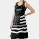 Für die Strafvollzugsbeamten ist diese dünne graue Schürze mit einer schwarzen, weißen und grauen amerikanischen Flagge versehen, die US Flagge mit einem schwarzen Rand von oben und unten enthält. Personalisieren Sie mit einem Namen in der weißen Typografie. Entworfen von Susan Coffey.