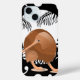 Eine Vektorgrafik eines Kiwi-Vogels. Der Vogel ist von Vollmond gerahmt, wie Kiwi nachts. Der Hintergrund ist schwarz-weiß Maori, traditionelle koru-Design. Eine Vogelillustrierung in Neuseeland.