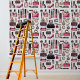 Schale und Stick Kosmetik Make-up Tapete. Ein tolles Gaumenprojekt für Mieter, Hausbesitzer und Innenarchitekten. Erstellen Sie ein personalisiertes Aussehen für Ihr Zuhause condo Apartment oder Geschäft. Die Wände sind mit Möbeln und Betttüren geschmückt. Erhältlich in texturierter und glatter Vinyl. Größe 2'x4' 2'x8' 2x10' 2'x12' und 2'x1' Uhr