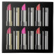 Ein lustiges Muster von bunten Lippensticks in Chromoschläuchen. Sehr mädchenhaft und modern. Sieht aus wie eine Lippenstift-City-Skyline.