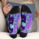 Treten Sie ein in eine ausgesprochen lebendige Atmosphäre mit den Cosmic Groove Öko Socks. Mit einem faszinierenden lila psychedelischen Hintergrund werden diese lustigen Socken mit grünen lächelnden Alien lebendig gemacht, die sich mit lila Blume-Headbands auseinander setzen und von schwimmenden lila Herzen umgeben sind. Aus gerecycelt Plastikflaschen gefertigt, bieten sie eine nahtlose, superweiche und dehnbare Passform mit verstärktem Zehen und Ferse - perfekt, um kosmische Freude zu verbreiten und gleichzeitig planetenfreundlich bleibe.