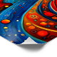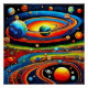 A.I. schuf eine surreale Interpretation aus meiner Beschreibung, die die abstrakte Komposition von Linien, Formen und Farben in einer kosmischen Anordnung darstellt, die die Sinne des Künstlers zufrieden stellte.