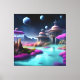 Wenn Sie eine leuchtende kosmische Szene mit kosmischen architektonischen Design, umgeben von einem schönen Wasser, Garten und einem Himmel voller Planeten Liebe. Das ist der Weltraum, den Sie suchen.
