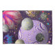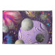 Cosmic Delight ist ein digitales Kunstwerk aus bunten Planeten und goldenen Sternen vor dem Hintergrund eines lila Himmels.
