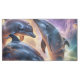 Dieses Design beinhaltet drei Delphine, die im Raum mit kosmischen Quallen schwimmen.