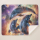 Dieses Design beinhaltet drei Delphine, die im Raum mit kosmischen Quallen schwimmen.