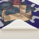 Ein lustiger Cartoon einer Astronautenkatze, der einen Helm trägt und in seiner Pappschachtel-Rakete Platz erforscht, mit dem Text: Kosmische Katze