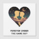 Romantisches kosmisches Herzdesign mit zwei Liebhabern unter den Sternen mit Halbmond und Wüstenfuchs. Ideal für Jubiläen, Valentinstag und romantische Geschenke.