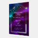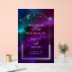 Kosmische Lila Aquamarine Sun Moon Stars Begrüßungszeichen Akryllisches Begrüßungszeichen mit silberner Sonne, Mond und Sternen mit einem silbernen Rahmen auf farbenprächtigem mystischem lila, aquamarinen und blauen kosmischen Hintergrund. Im Rahmen befindet sich Ihr eigener Text in elegantem, weißem Kalligraphieskript. Entwickelt für Sie von ©2024 Evco Studio www.zazzle.com/store/evcostudio