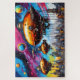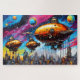 ({{AI ART}}) Drei Luftschiffe fliegen im kosmischen Himmel über der Skyline der Stadt.