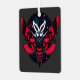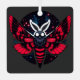 Das Design zeichnet sich durch eine stilisierte Grafik einer Motte mit weiten Flügeln vor einem kosmischen Hintergrund. Die Motte hat detaillierte, symmetrische rote und schwarze Flügel mit weißen Akzenten, die Tigerstreifen ähneln. Sein Körper ist lang gestreckt und mit schwarzem Pelzgewebe bedeckt. Er hat zwei große, runde, weiße Augen, die sich gegenüber seinem dunklen Gesicht abheben. Der Hintergrund zeigt eine Raumszene mit Sternen und Nebel in Blau- und lila Farbtönen, die dem Design eine ätherische Qualität verleiht.