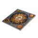 Mit dieser atemberaubenden Himmelskachel-Keramik überqueren Sie den Himmel. Der blauen Hintergrund der reichen Marine erinnert an die weite Ausdehnung des Nachthimmels, wodurch die strahlende goldene Sonne in der Mitte wirklich strahlt. Die lächelnde Sonne strahlt Rochen von orangen und gelben Flammen aus, die um die Kacheln zu tanzen scheinen. An den Grenzen wie Sterne in der Milchstraße herumzutappen, sind astrologische Symbole wie ein Halbmond, ein ringförmiger Planet und ein glitzernder Fünf-Punkte-Stern. Kleine Rubäume und goldfarbene Juwelen umkreisen die Szene und fügen eine Touch kosmischen Funkels hinzu. Dieses Gesprächsstück bringt ein skurriles, galaktisches Bild, ob man eine Wand ergreift oder das Lieblingsschmuckstück zeigt. Lass deinen Fantasiestart in den Orbit mit dieser Keramik Kunstwerk!