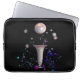 Ein zentrales Trompet-ähnliches Objekt, umgeben von farbenfrohen Kugeln und Sternexplosionen, ist das Set vor einem schwarzen Hintergrund. Die Anordnung gibt ein Gefühl der schwebenden oder kosmischen Zerstreuung.