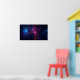 Ein Poster mit einem blauen, rosa und schwarzen Fantasiebild des kosmischen Raumes mit Sternen und Weisheitsnebel.