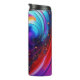 Ein abstraktes Design von regenbogenfarbenen Wirbel und kleinen Planeten, die sich um sie gruppieren, schafft einen wunderschönen Thermalreisekrug.