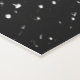 Ein abstraktes Schwarzweißbild, das unzählige kleine, weiße Flecken zeigt, die auf einem dunklen Hintergrund verstreut sind, Sternen ähneln oder kosmischen Staub, der in der riesigen Leere des Raumes schwebt und ein Gefühl von Rätsel und Unendlichkeit hervorruft.