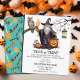 Niedlich Trick oder Treat Invitation für die ganze Familie mit einem Zauberer und einer Vormundbild. Sie können diese Einladung mit Ihren Daten personalisieren.
