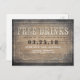 Rustikal und lustig Save the Date Postkarte ' Free Drinks ' - eine einzigartige Möglichkeit, Ihre Hochzeit anzukündigen.